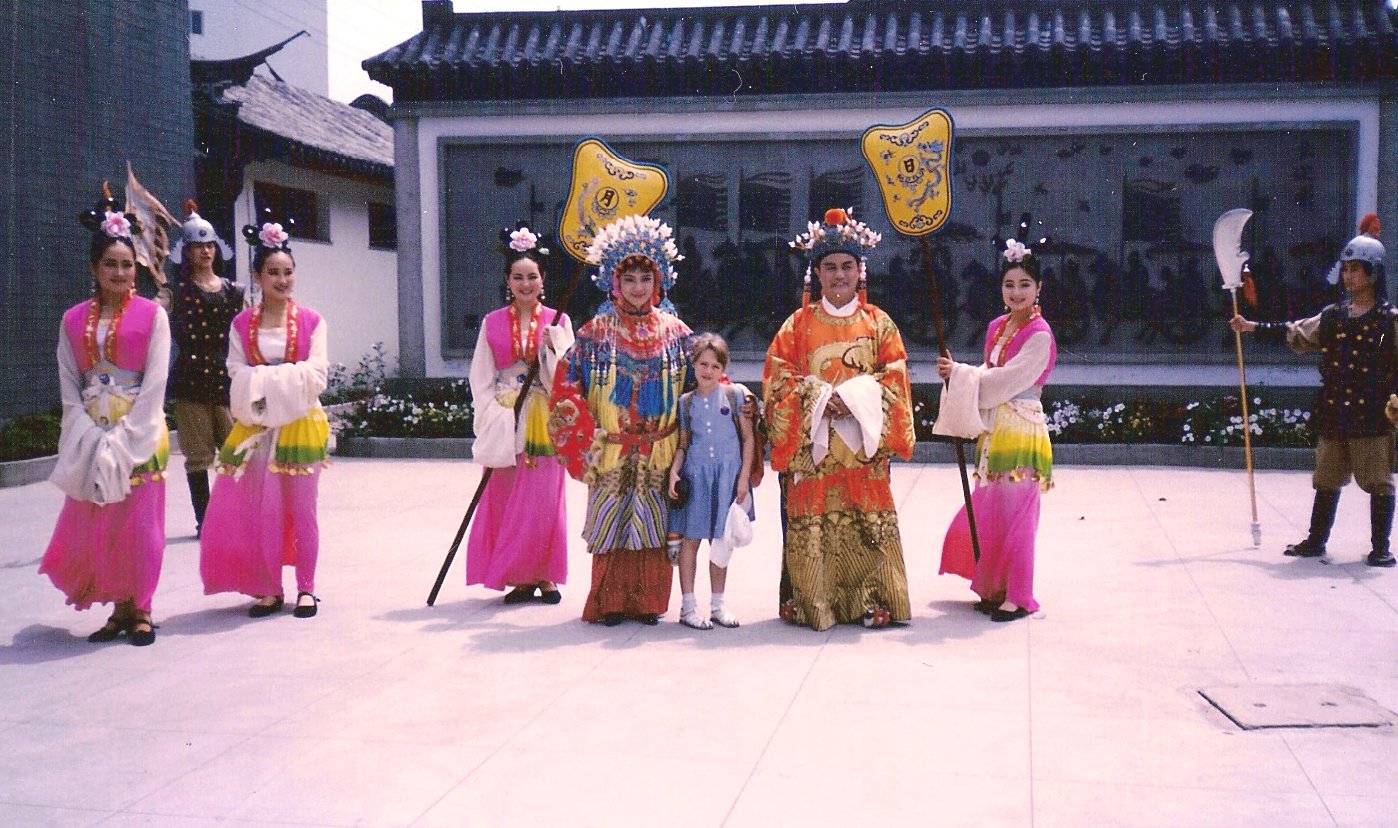 Julie : Oui, c’était chinese excursion. On est allés dans une maison avec un curly toit (NLDR : c’était l’opéra de Pékin). J’avais pris mon appareil photo. D’abord les filles sur le côté ont chanté. Tellement fort que nos oreilles étaient presque bouchées. Après le show, on a fait la photo.