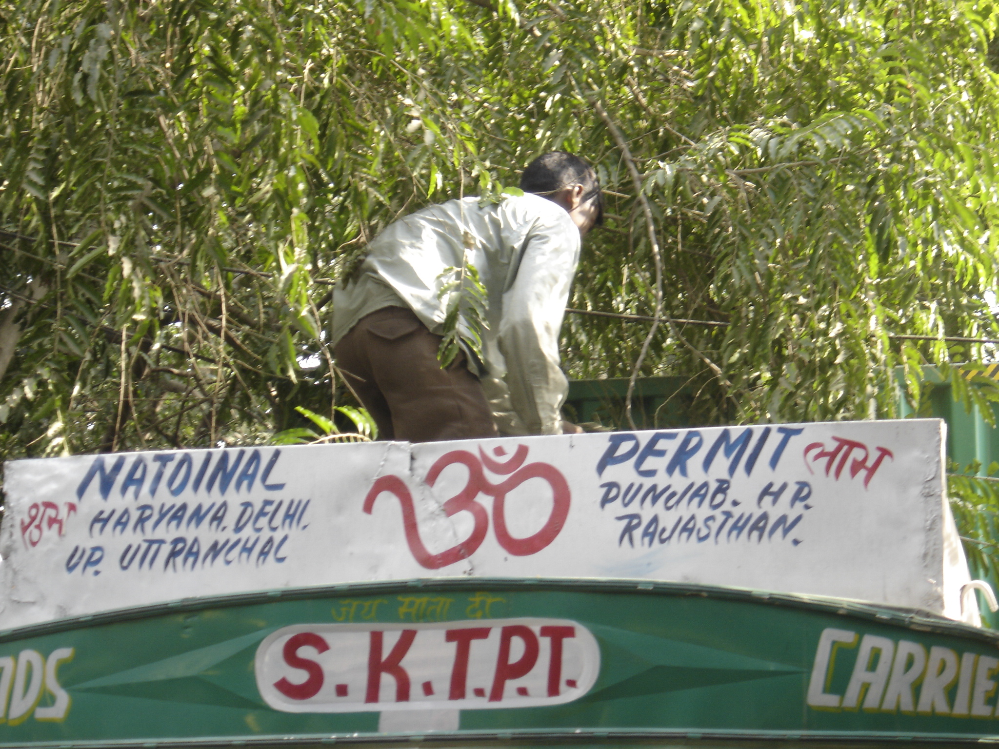 move-007.jpgLe jeudi 8 février 2008, nous sommes à nouveau dans l’attente. Mais, cette fois, je ne suis pas seul dans l’appartement. Ma douce et tendre est avec moi et nous attendons notre conteneur. Youpie ! Après trois mois, ce n’est pas trop tôt ! A 9h30, on sonne à la porte. C’est Tej, notre chauffeur, qui vient nous informer que le camion est bloqué à quelques kilomètres d’ici, en raison de l’étroitesse des ruelles. Il faut que je me rende sur place pour assister à l’opération d’ouverture des scellés. Tej m’y conduit, et au détour d’un virage, je découvre le semi remorque immense, rangé sur le bas-côté d’une ruelle, immobile et inerte, tel une baleine échouée sur une plage. Je l’inspecte rapidement, il a l’air en bon état. Les lettres blanches « Evergreen » tranchent sur le vert éclatant. On m’informe qu’ils vont essayer de progresser encore, apparemment ils auraient découvert une voie d’accès pour se rapprocher de notre appartement. L’immense bahut se met en branle et progresse lentement. D’énormes branches basses entravent le passage, mais elles sont brisées nettes par le mastodonte, aussi facilement que s’il s’agissait de fétus de paille. Un coup d’œil derrière nous, et je constate l’hécatombe. C’est la désolation : des feuilles en pagaille, des branches arrachées jonchent le sol. Un vrai désastre…