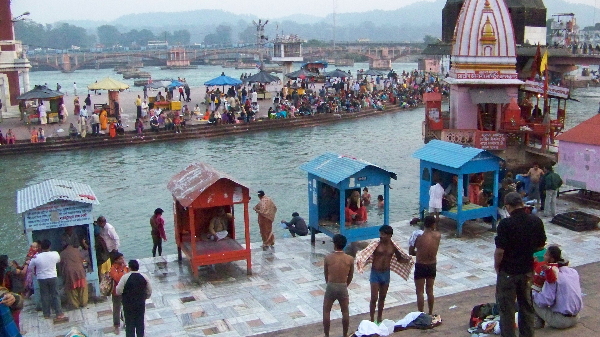 Depuis notre arrivée en Uttarakhand, quatre jours plus tôt, j’avais eu le temps d’apprendre qu’Haridwar n’était pas un bled perdu dans la campagne indienne, comme je l’avais d’abord imaginé, mais bien une des sept villes sacrées des Hindous. Située au pied de l’Himalaya, elle est en fait la toute première ville baignée par les eaux sacrées du Gange et, à ce titre, bénéficie d’un statut tout particulier pour les pèlerins. Une fois tous les trois ans, on y célèbre le mêla, une grande fête religieuse qui attire jusqu’à deux millions de personnes, et, une fois tous les 12 ans, le khumb mêla, le « grand mêla » où jusqu’à dix millions de pèlerins affluent de partout en Inde. Le dernier en date, à la fin des années nonante, s’était terminé tragiquement. Un mouvement de foule avait provoqué une panique et des centaines de personnes avaient péri piétinées dans la mêlée.