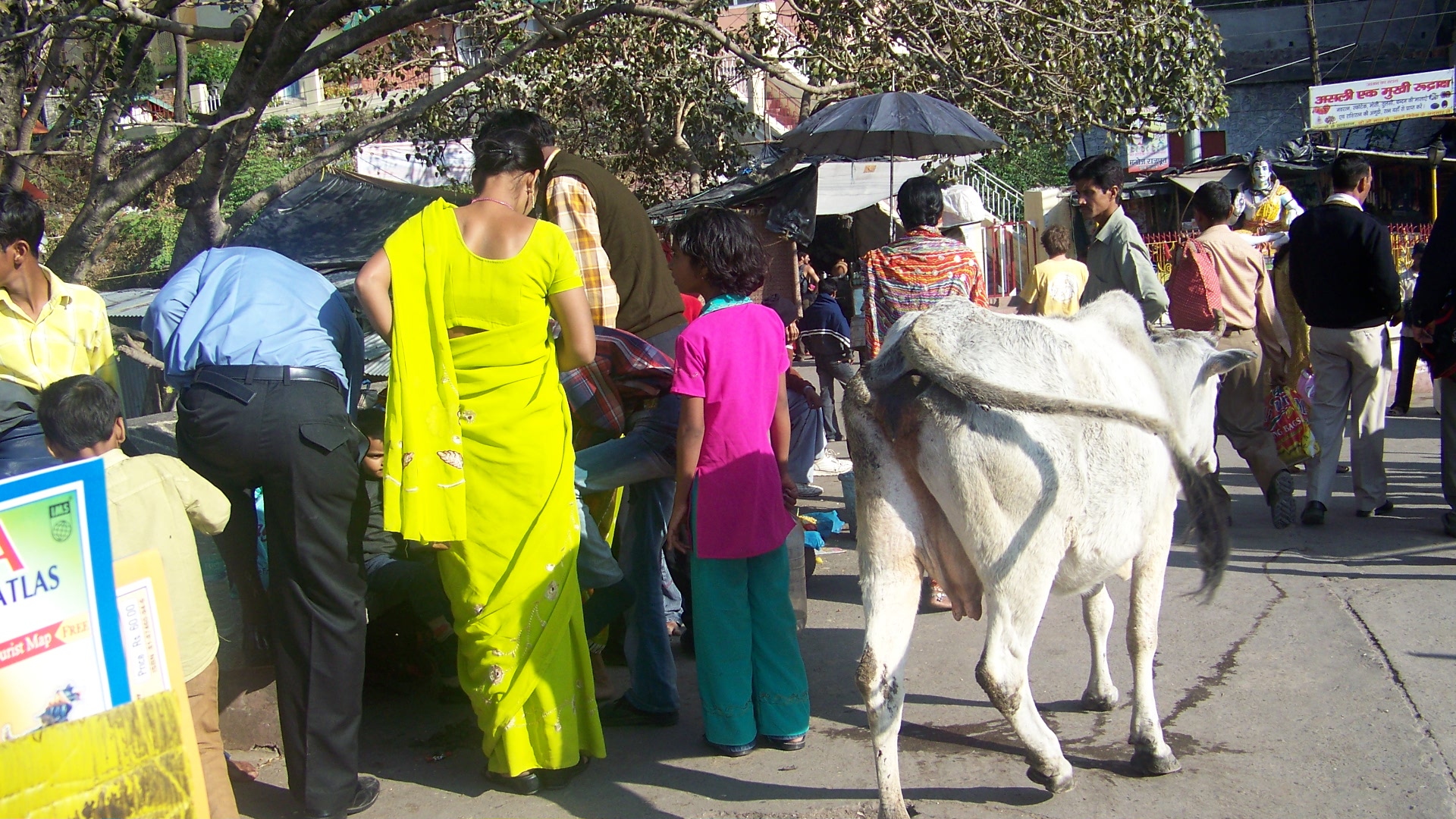 De l’autre côté du pont, j’avais voulu prendre un dernier cliché de la belle Indienne. Mais dans mon viseur, j’avais découvert avec stupeur, à ses côtés, un cul de vache magistral. C’était la belle et la bête, toute l’Inde en fait, résumée en une photo format carte postale, l’Inde où le sublime côtoie le sordide quasiment en permanence.