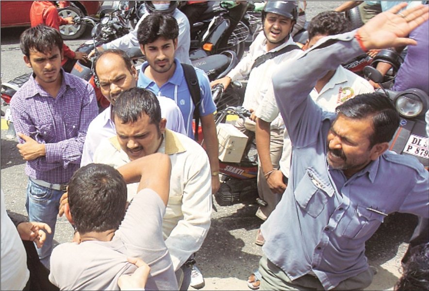 grossièreté et de la violence au quotidien. Pas tellement comme cela se passe de plus en plus souvent chez nous, hélas (les agressions violentes, le banditisme, les crimes crapuleux ou le hooliganisme), mais plutôt l’agressivité banalisée au quotidien, en particulier derrière le volant ou dans la manière dont les gens vous parlent, vous regardent et se comportent avec vous. Le mieux, à mon avis, c’est d’éviter les situations de stress, et les confrontations, et tout particulièrement conduire qui est vraiment l’expérience la plus stressante et la plus traumatisante que je connaisse à Delhi. Pourtant dieu sait que j’aime conduire, mais ici la rage au volant et l’égoïsme atteignent des sommets inégalés …